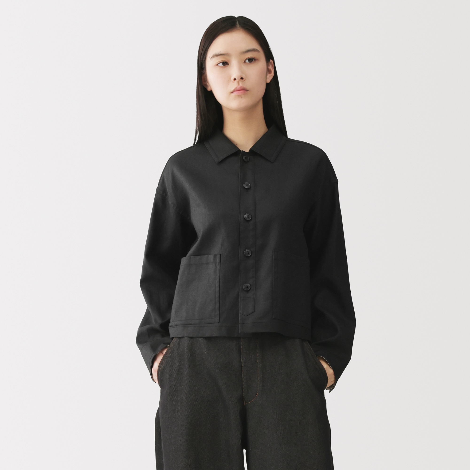 無印良品 ジャケット 麻 リネン100% ブラック 黒